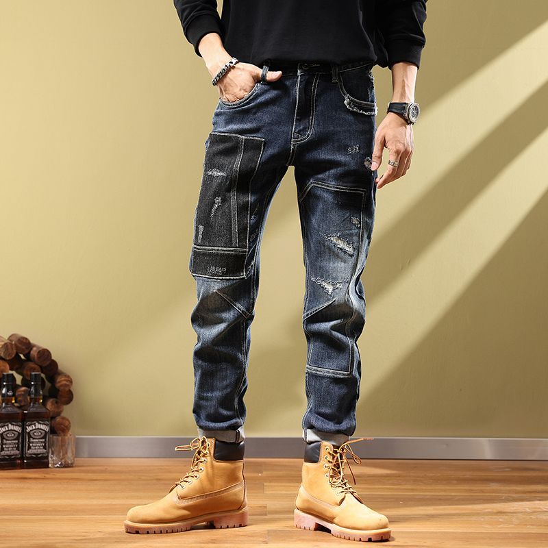 Home Jeans Fashion Handsome Personality Retro Patchwork Jeans